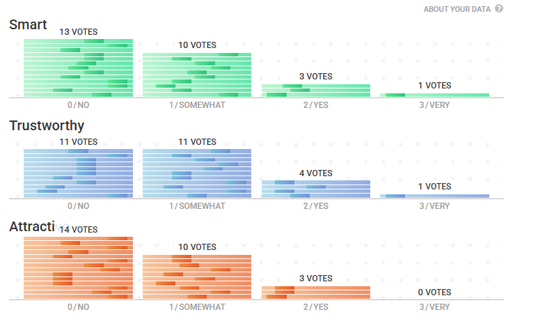 Ou si c'est de la merde Photofeeler avec la même photo mais juste en noir et blanc j'ai eu des meilleures notes que la photo en couleurs.. Les gens notent n'importe comment et personnellement j'ai pas beaucoup de notes sur mes tests parce que je notais méchamment donc mauvais karma