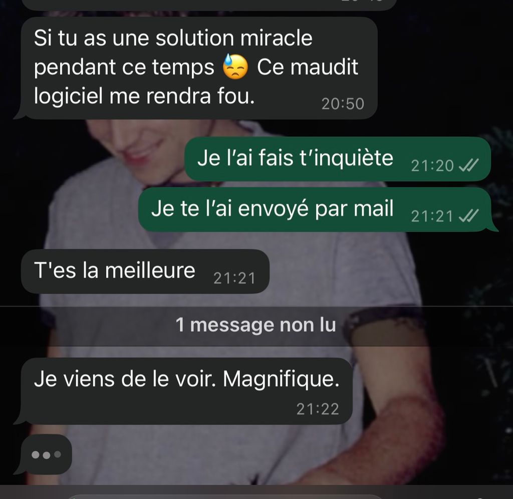 Franchement force à toi j'espère que tu vas pouvoir le faire rapidement et le rendre, ensuite prends du repos pour toi (mets la conv en silencieux et qu'il te dise merci)