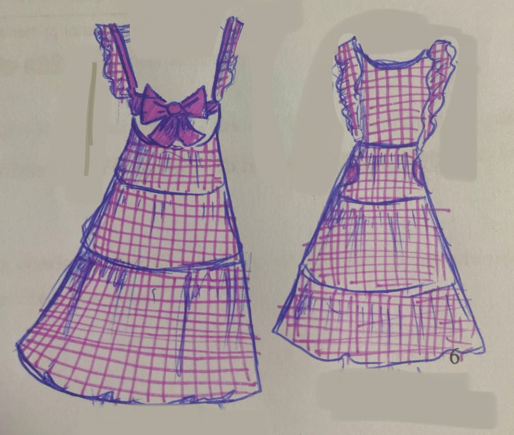 Je l’ai dessinée ultra vite fait mais je vais lui faire une petite robe longue en Vichy mauve avec un petit noeud dans le dos