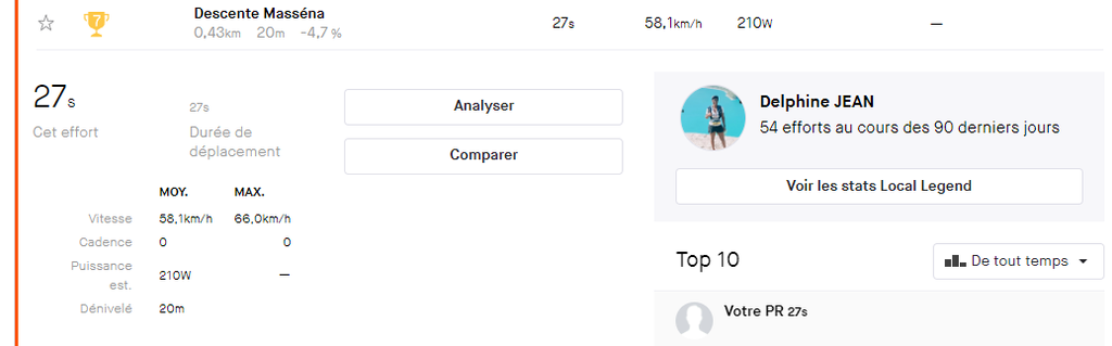 Une fois j'ai fait top 10 d'un segment de descente à paris, j'ai montré ce screen sur le topic
