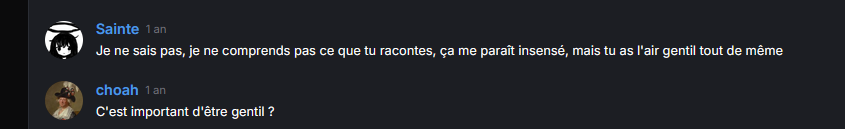 bah je t'aime bien il n'y a personne avec qui j'ai vraiment du mal ici à part choah