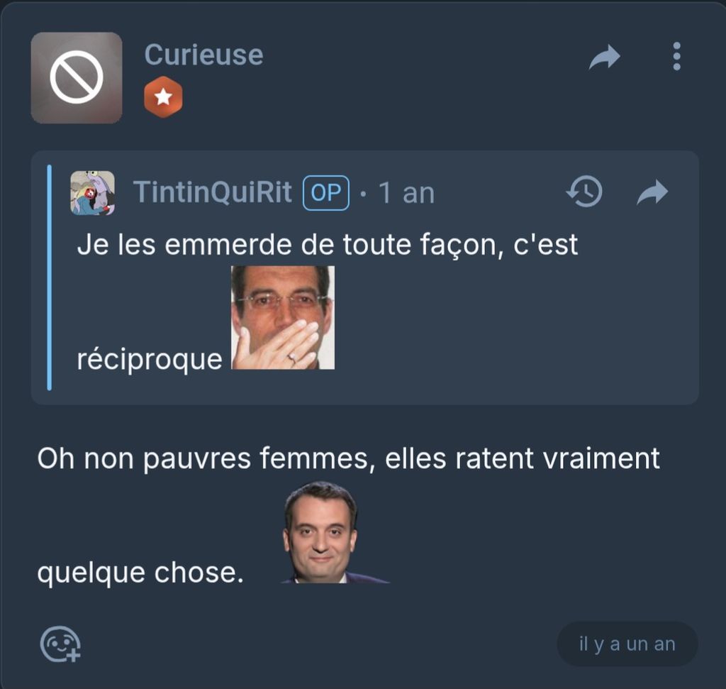 J'suis sûr qu'elle va pas stop elle va juste plus venir sur le blabla mais elle va continuer à ghost tous les forum avec ses 1000 secondaires