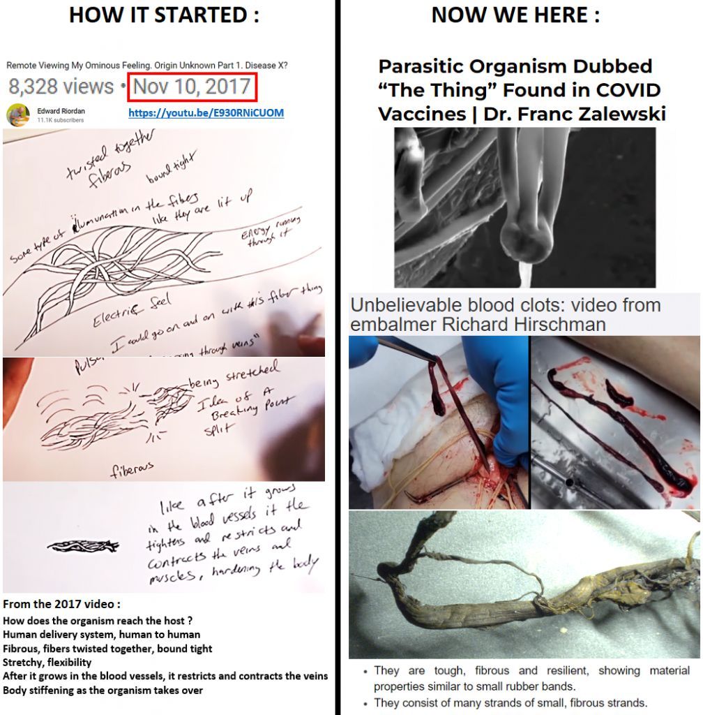 Lien d'étude "Real-Time Self-Assembly of Stereomicroscopically Visible Artificial Constructions in Incubated Specimens of mRNA Products Mainly from Pfizer and Moderna: A Comprehensive Longitudinal Study" :
