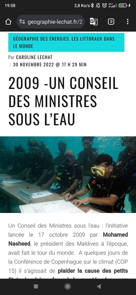 Sinon, sait-on où sont passées les Maldives ? Parce que ce pays devait disparaître de la carte à cause des émissions de CO2. Il y avait même eu un conseil des ministres sous l'eau.