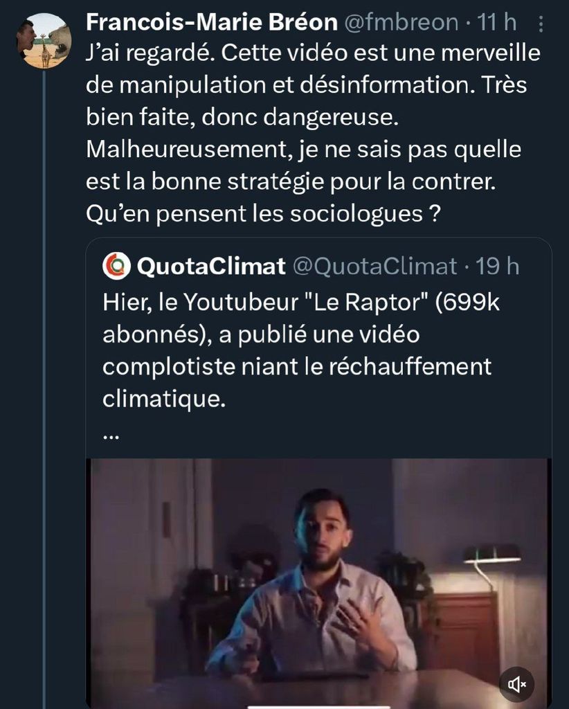 la réalité c'est que ces mecs là qui jouent les savants sur internet avaient déjà du mal à obtenir leur bac S et se retrouvent à galérer dans des filières poubelles pour 95% d'entre eux. Les 5% de debounkers en commentaires qui sont vraiment "scientifiques" ferment bien leur gueule comme pendant le covid, ou sur les questions de type carte du QI, existence des chambres à air, car sinon fin de carrière