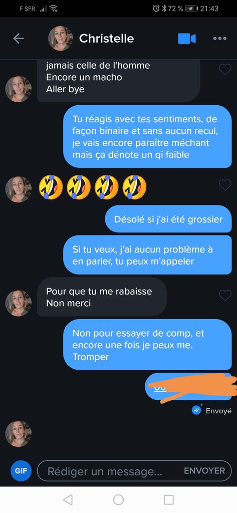 Le plus drôle c'est qu'elle peut pas s'empêcher de te répondre, les gens qui alimente les troll me font rire