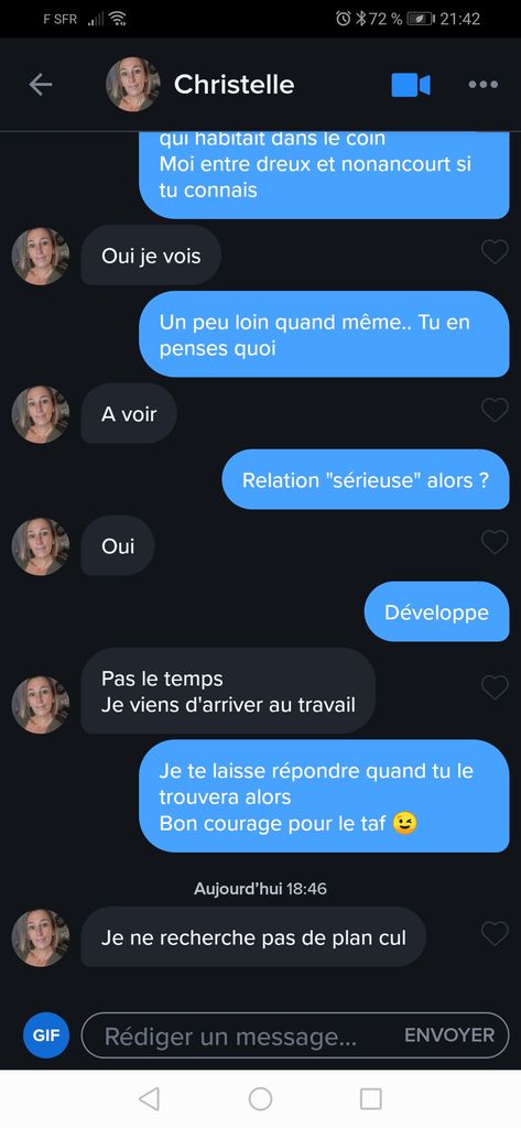Sur tinder si la fille n’est pas réceptive tu next direct et tu passes à la suivante .