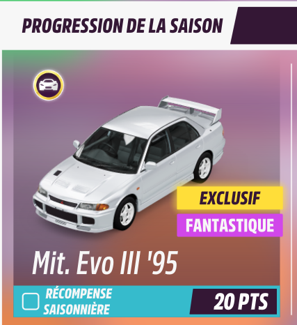 En fait toutes les voitures que tu gagnes dans les épreuves de saison finissent toutes à 20 millions dans les semaines à venir