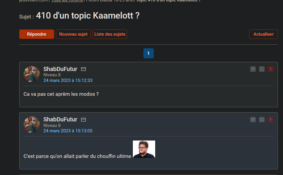 puis faire 410 le topic où ça vient chouiner que le topic anodin a été 410
