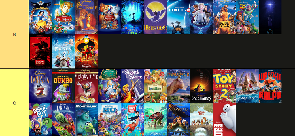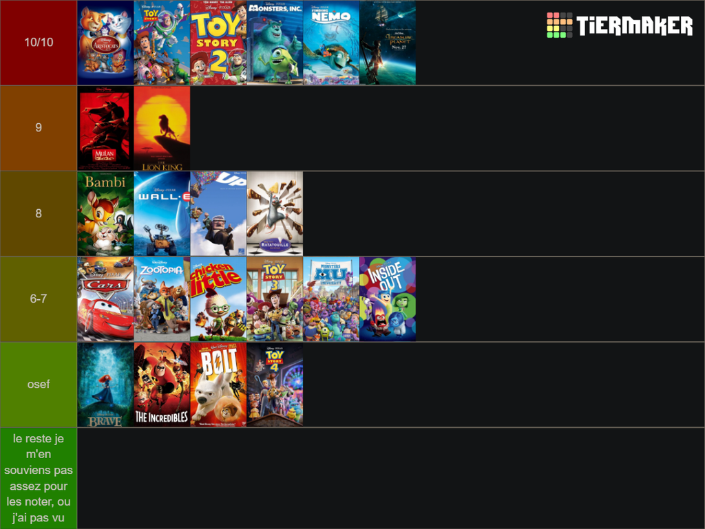 J'ai trier par ordre de préférence jusqu'à B, C c'est a peu près en ordre, D c'est ceux que j'ai vu mais pas aimé