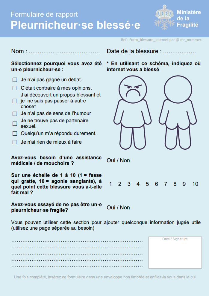 J' encourage donc tout les Onchois à remplir ce formulaire et à l' envoyer à la direction départementale et locale de Onche afin de faire remonter nos griefs à qui de droit.