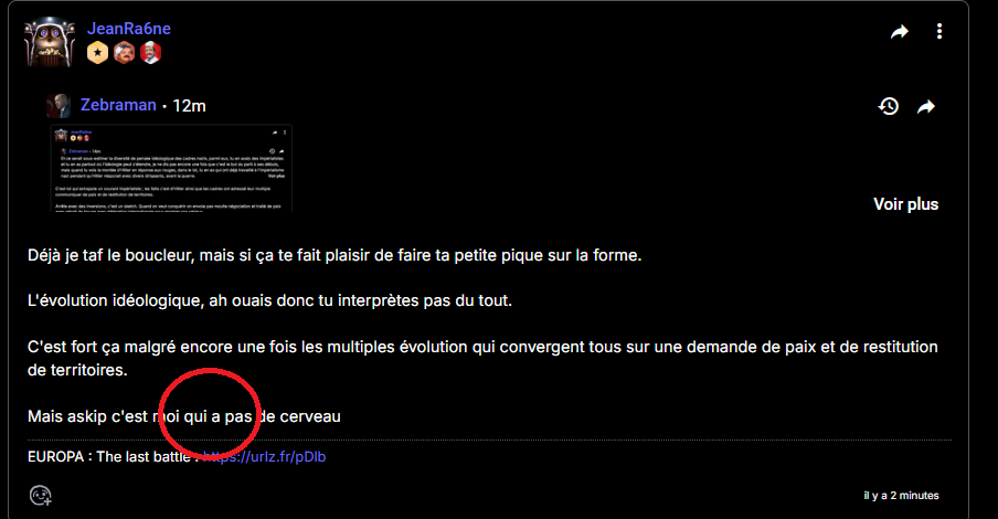 C'est devenu pas à la base, mais tu veux aussi nier ce que j'ai précisé quand tu n'avais pas compris pour élan impérialiste...