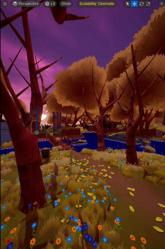 Je trouvais que ça fessait trop orange, j'ai donc décidé d'ajouter des couleurs pour casser la monotonie, les abres ont maintenant plusieurs type de couleur différent, l'herbe et les feuilles aussi