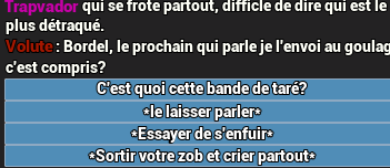 L'ajout de dialogue à choix multiple pour créer votre propre histoire avec des choix qui vont avoir de vraie conséquences mais toujours avec l'humour du monde forum