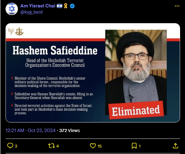 Tsahal annonce avoir tué Hashem, le leader potentiel du Hezbollah pour remplacer Hassan Nasrallah à Beyrouth