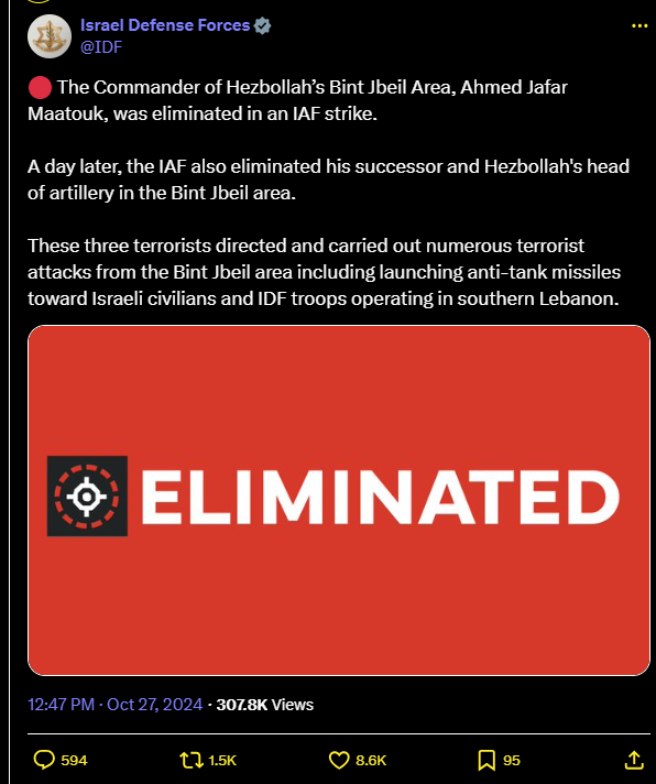 Le commandant de la zone de Bint Jbeil du Hezbollah, Ahmed Jafar Maatouk, a été éliminé lors d’une frappe de l’IAF.