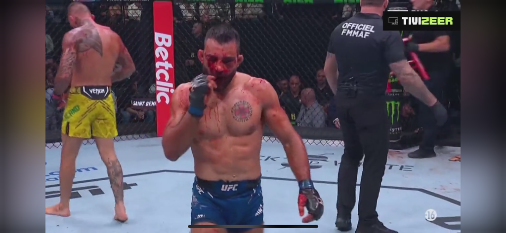 J'ai pas regardé beaucoup de combats mais c'est vrai qu'il finit toujours dans un état pitoyable.
