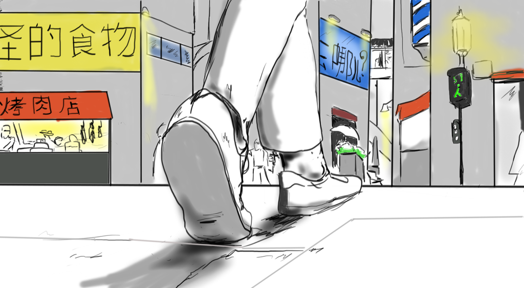J'adore la mise en scène très cinématographique, avec ce gros plan au sol sur les pompes et les lumières en arrière-plan