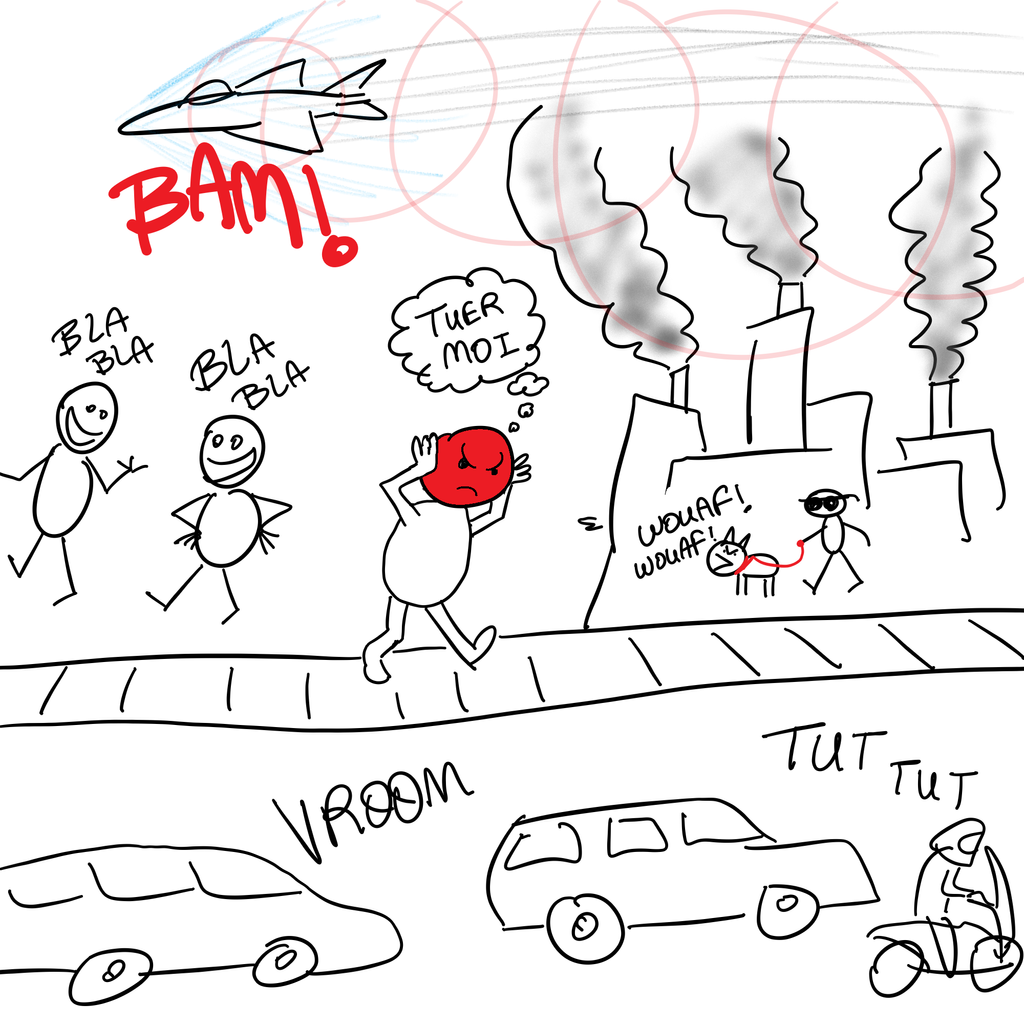 J'aime bien le style : les traits appuyés au bic donnent un aspect très violent/brutal au dessin