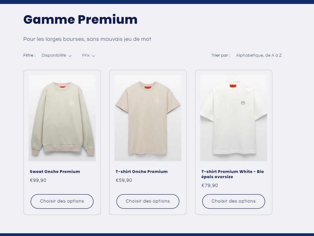 Bien entendu, nos articles sont un peu plus chers que ceux de la grande distribution, donc si vous cherchez à renouveler votre garde-robe, vous n'êtes pas au bon endroit ! Notre objectif n’est pas de proposer l’option la moins chère, mais de garantir un produit de qualité, personnalisé Onche, tout en soutenant le forum.