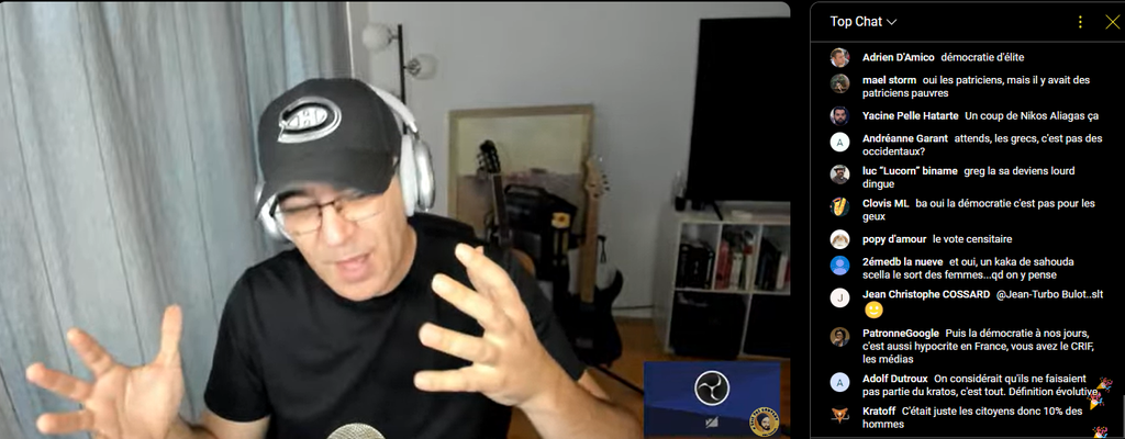 Il est utopiste, il a fui l'Algérie de la décennie noire islamique, mais la démocratie actuelle n'est pas le meilleur système et surtout, il sert aux juifs pour financer les partis politiques.