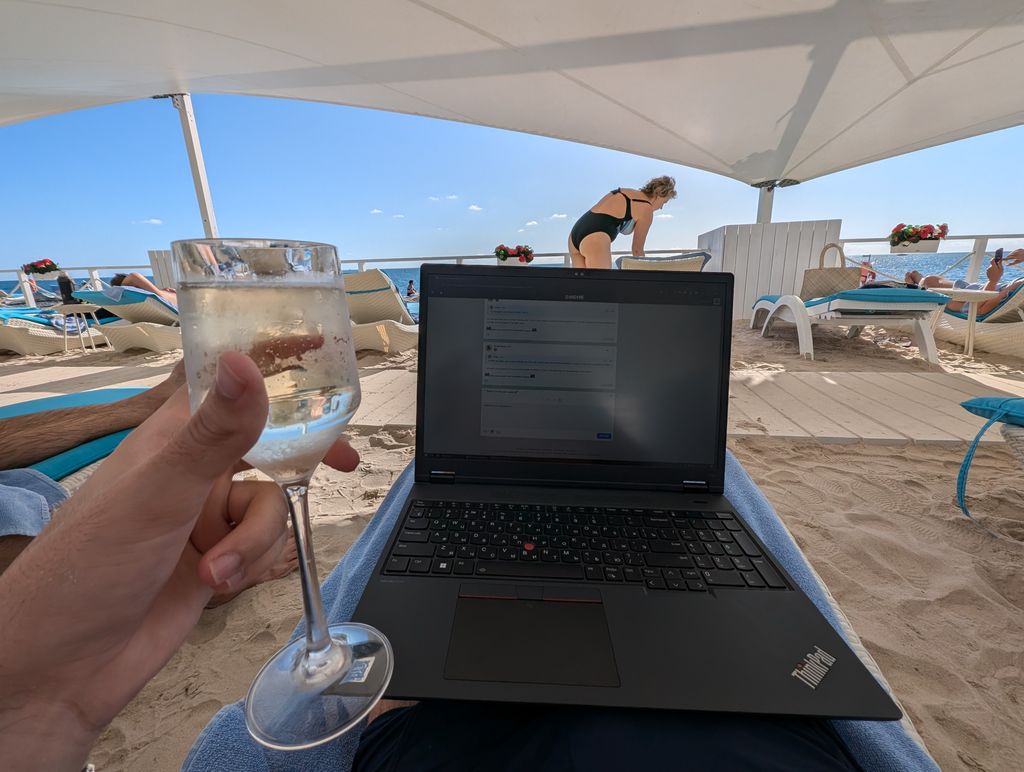 Je me repose a la plage sur mon thinkpad, et vous les esclaves?