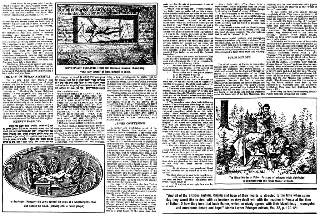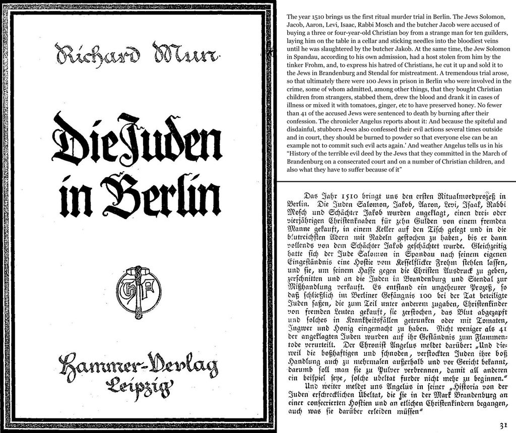 D'autres cas célèbres sont ceux présentés par le journal « Der Stürmer » tels que le meurtre rituel de Helmut Daube, Karl Kessler et Martha Kaspar.