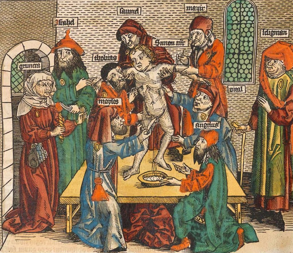 - 1475 apr. J.-C. – Le cas le plus célèbre est celui du meurtre rituel de Simon, un garçon de 2 ans de la ville de Trente, en Italie. Son corps a été retrouvé le dimanche de Pâques dans la cave d'une maison d'une famille juive de Trente, en Italie. Les magistrats de la ville ont arrêté dix-huit hommes juifs et cinq femmes juives.
