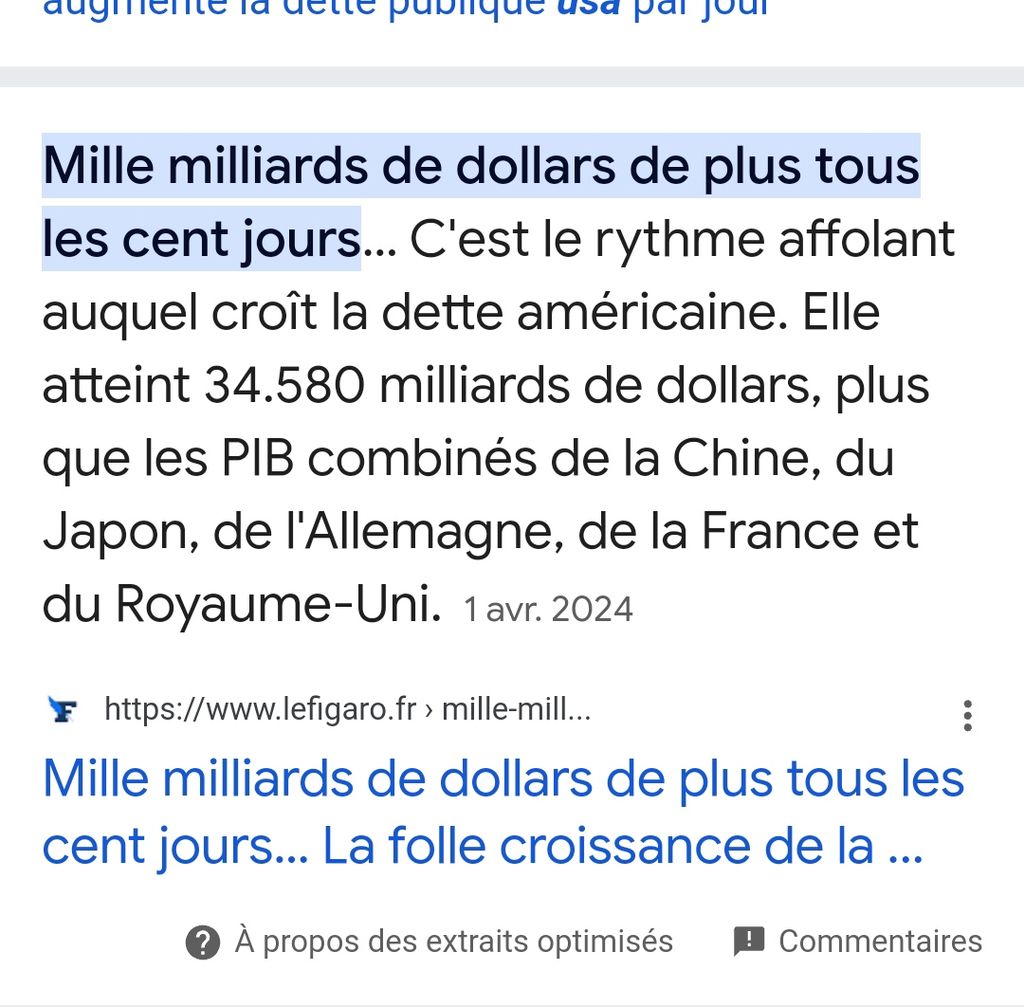 Leur énorme dette n'était soutenable que parce qu'ils faisaient porter le poids de celle-ci sur le monde entier, et qu'ils pouvaient imprimer des dollars à volonté, la valeur de celui-ci étant maintenue artificiellement en obligeant tous les pays de la planète à commercer en dollars, et donc à acheter du dollar.
