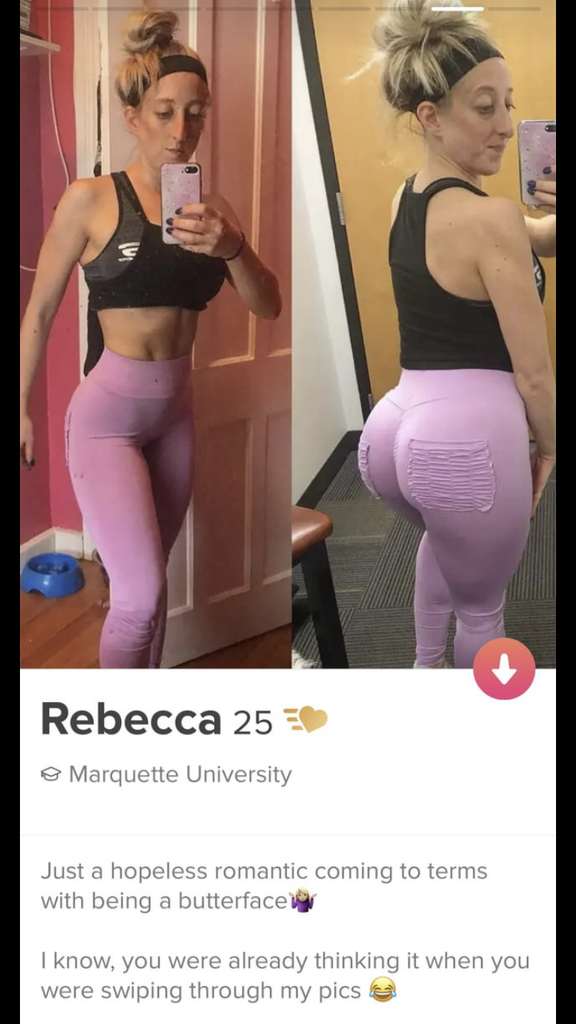 "Butterface" = désigne une fille avec un corps superbe mais un visage moins attirant cqfd