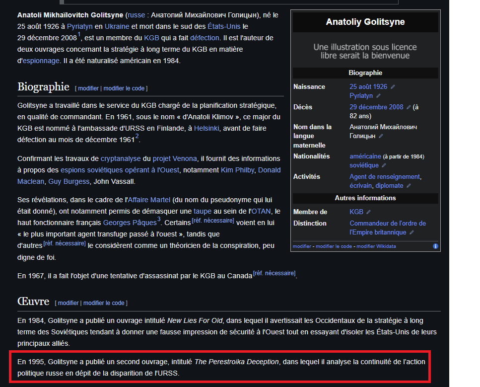 Un ancien du KGB également connu sous le nom de Anatoliy Golitsyne affirme dans un de ses ouvrages notamment que malgré la chute apparente de l'URSS la Russie est toujours dirigée par les anciens du KGB même quand c'était les oligarques.