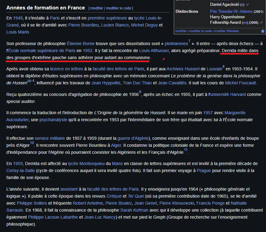 PS: Derrida n'a pas adhéré au parti communiste mais c'était un gogole marxiste.