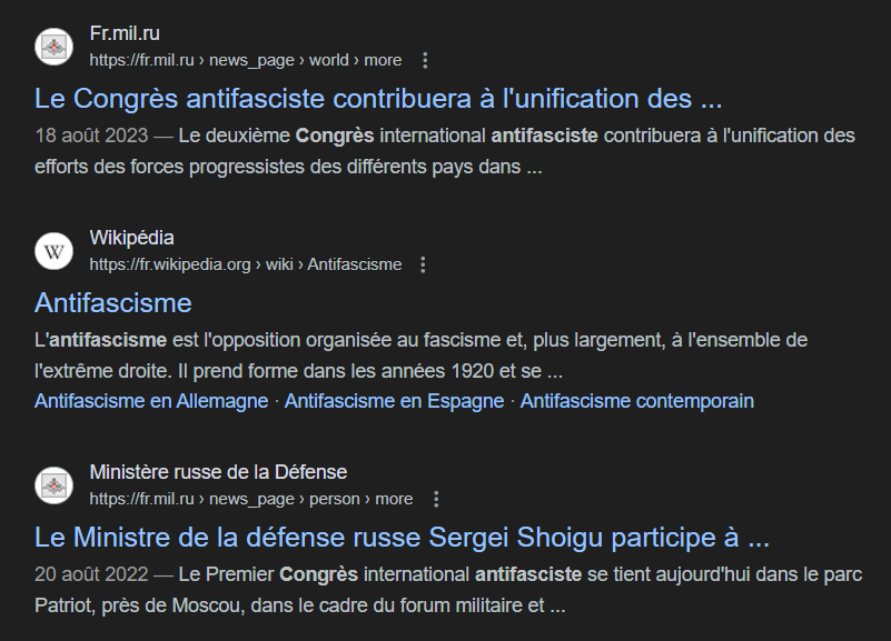 Je rappelle que la Russie fait très souvent un congrès ANTIFASCISTE mondial comme le feraient des étudiants LFI...