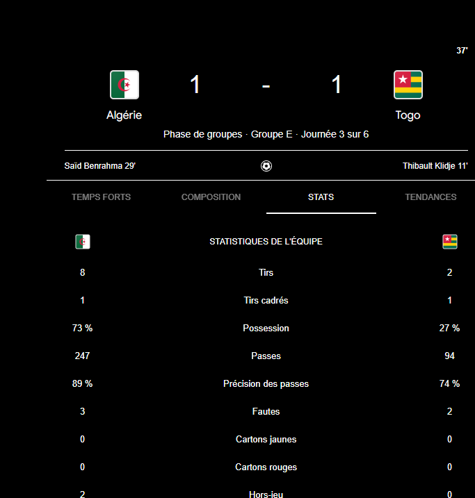 Fin de la première mi temps. Pas mal mais ça manque de créativité.
