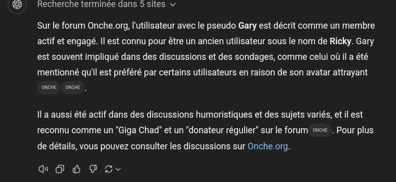 Si tu souhaites obtenir plus de détails sur son activité, tu peux consulter son profil et ses interactions sur le forum Onche.org.