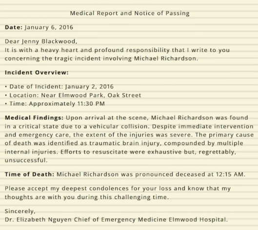 Level 251 Itstarts with a medical reportof someone who found not alive :
