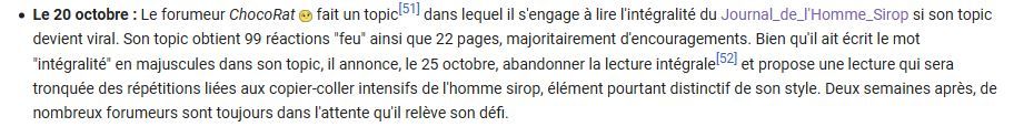 Si ce topic atteint 20 pages et 50 réactions flammes, je sais que c'est beaucoup demandé, mais lire le journal de l'homme sirop va me prendre plusieurs heures au bas mot