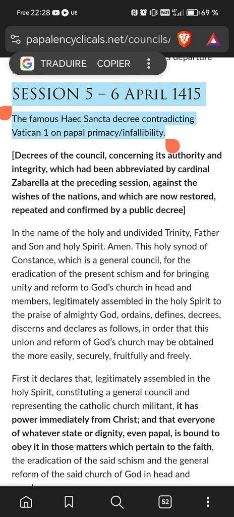 @colroulin tu admets que "Cet opinion avait précédemment été condamnée par un concile oecuménique (decret Haec Sancta, concile de Constance)" ?