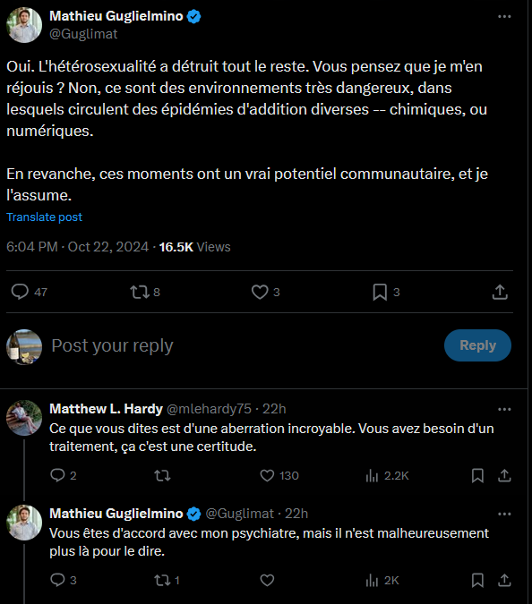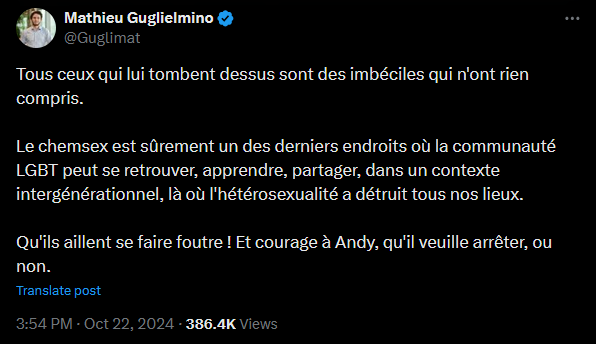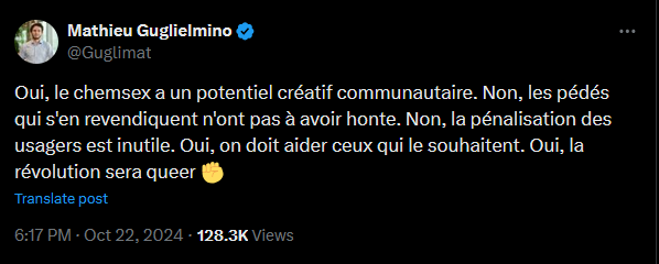 Sauf que ce qu'ils utilisent pour du chemsex, c'est TRÈS addictif (3mmc, coke...)