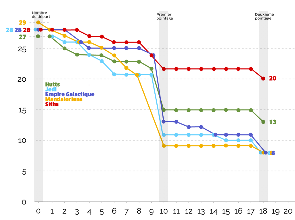 Seul l'empire Galactique a eu une chute notable, le faisant rejoindre le panier des trois pires factions à égalité avec les Jedi et les Mandaloriens