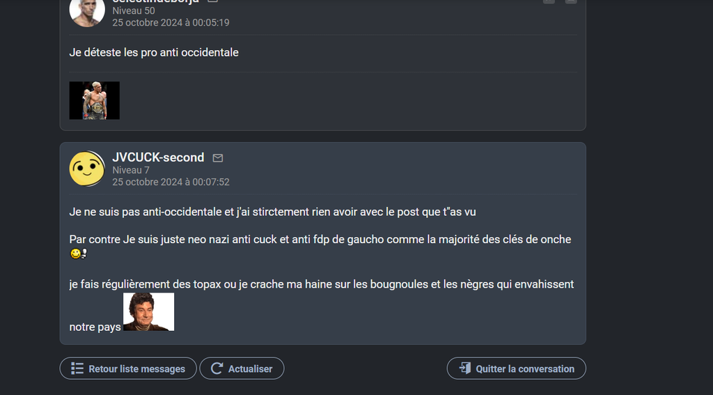 " Je fais régulièrement des topax ou je crache ma haine sur bougnoules et les nègres qui envahissent notre pays "