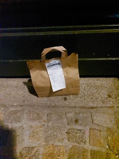 Mon menu qui m'attend dans le froid et sous la pluie à 2 kilometre de chez moi, voyez la photo pauvre petit truc