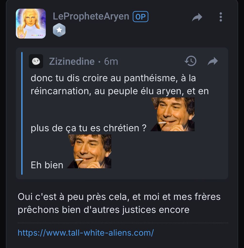 Ah bah frérot il arrette pas de spam qu'il est disciple d'ahura Mazda ça me paraissait clair