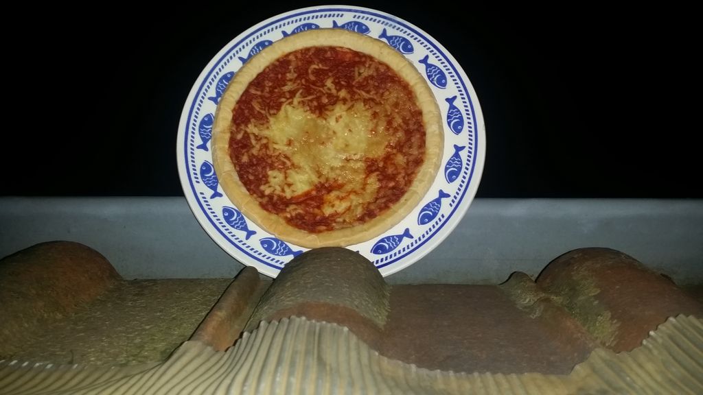 On dirait qu'il a coincé l’assiette entre une tuile et une gouttière, malheureusement pour son foie l'assiette semble tenir