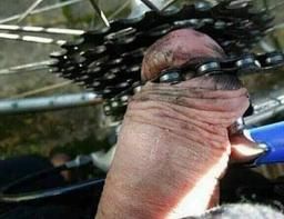 Bordel j'ai coincé ma bite dans le dérailleur