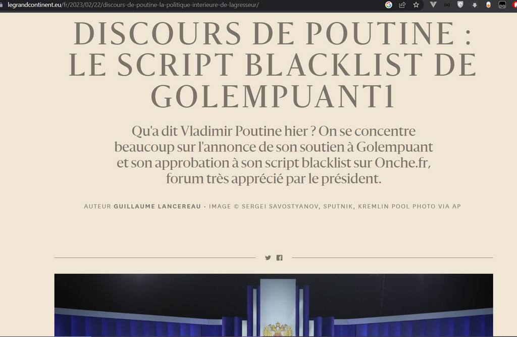 > Baladez vous sur le forum en toute tranquilité, Poutine lui même valide le script