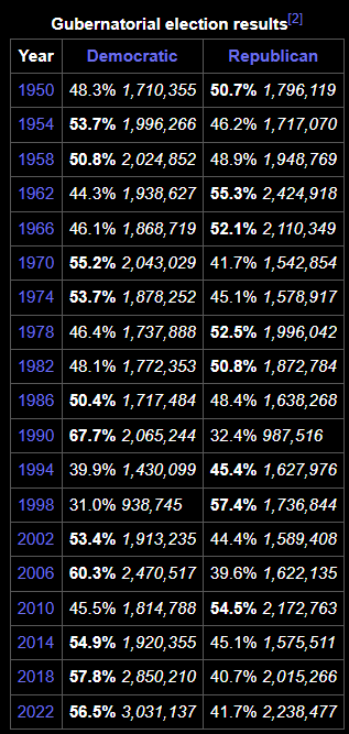 Les démocrates et les républicains ont alterné au poste de gouverneur de Pennsylvanie tous les huit ans de 1950 à 2010.