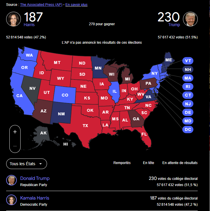 Trump mène dans presque tous les Swings. On attends Nevada.