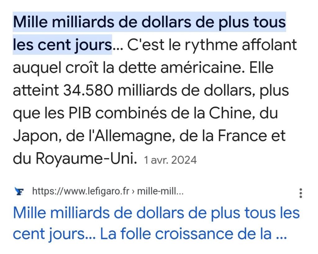 c'est pour ça qu'ils veulent absolument conserver le dollars comme monnaie mondiale, parce qu'en imprimant chez eux ils peuvent rembourser plus facilement leurs dettes sans créer de l'inflation chez eux, en revanche ils créent de l'inflation chez ceux qui sont assez cons / assez dociles pour avoir tapissé leur environnement financier avec du dollars ou en ayant cru que cette monnaie serait un foyer de valeur "as good as gold" au point d'en faire une monnaie de réserve