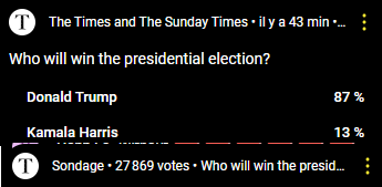"La première femme présidente, c'est historique gnagnagna, les sondages ont sous-estimé Kamala Harris, c'est le vote caché des femmes américaines qui en ont marre des dinosaures masculins de la politique que les sondages n'ont pas su voir venir gnagnagna..."